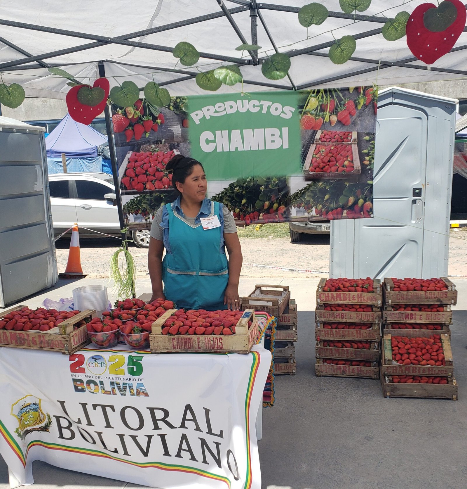 En el Paseo de Compras Cultural República de Bolivia, se está llevando a cabo la primera edición de la Fiesta de la Frutilla, que cuenta con la participación de productores de toda la región. Un destacado ejemplo es el de Rosa Condorí —productora de la zona de Escobar— , quien vive una jornada que no olvidará fácilmente. Es la primera vez participa de un evento para mostrar el fruto del trabajo familiar.