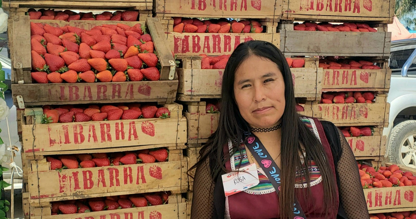 Con una mezcla de timidez y orgullo, Rosa cuenta que lleva seis años dedicada a la producción de frutillas. Su marca, Alex Ibarra, ya es conocida dentro de la colectividad boliviana y se sostiene desde unas 30 hectáreas de cultivo que trabaja junto a toda su familia.